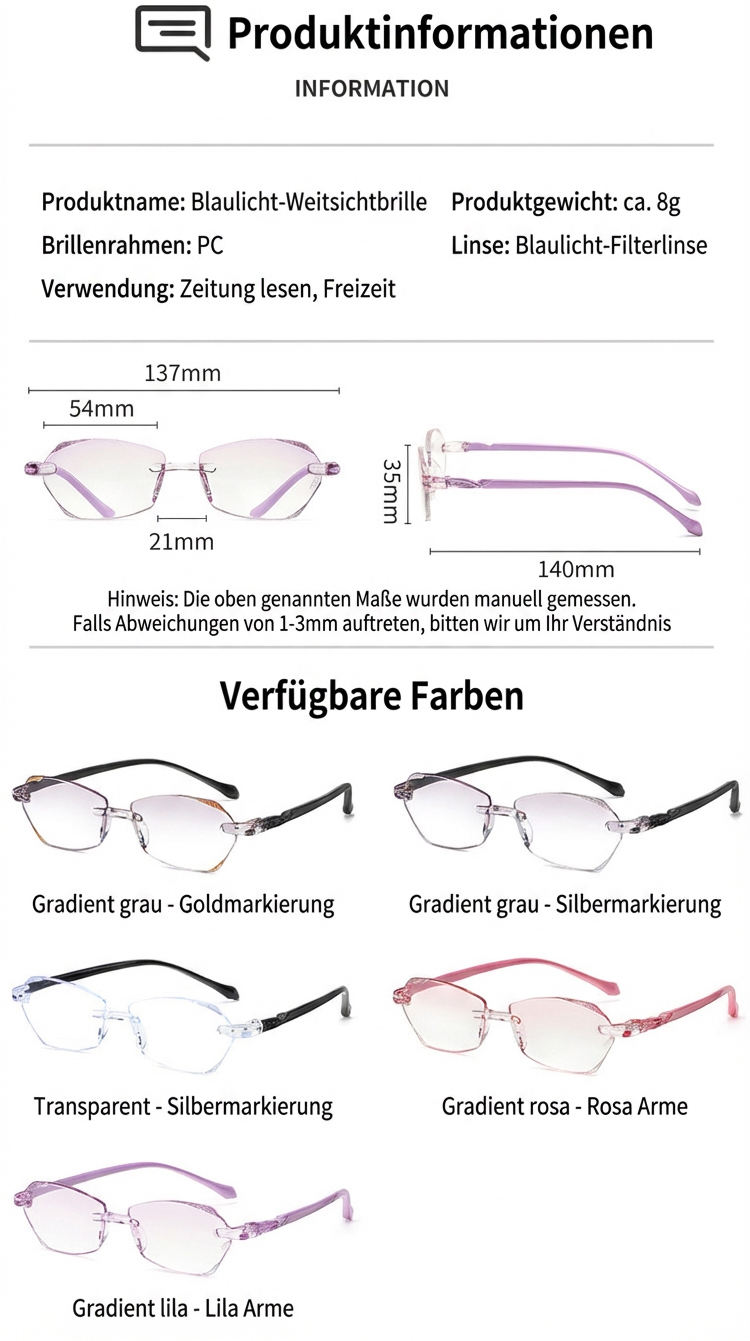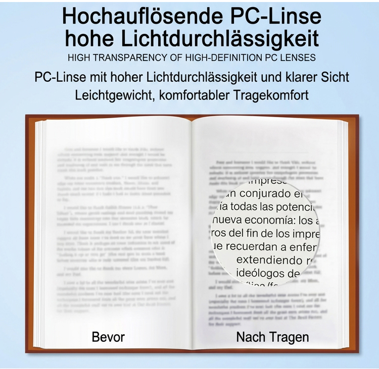 Ultraleichte, integrierte, intelligente Zoom-Diamantschliff-Lesebrille.