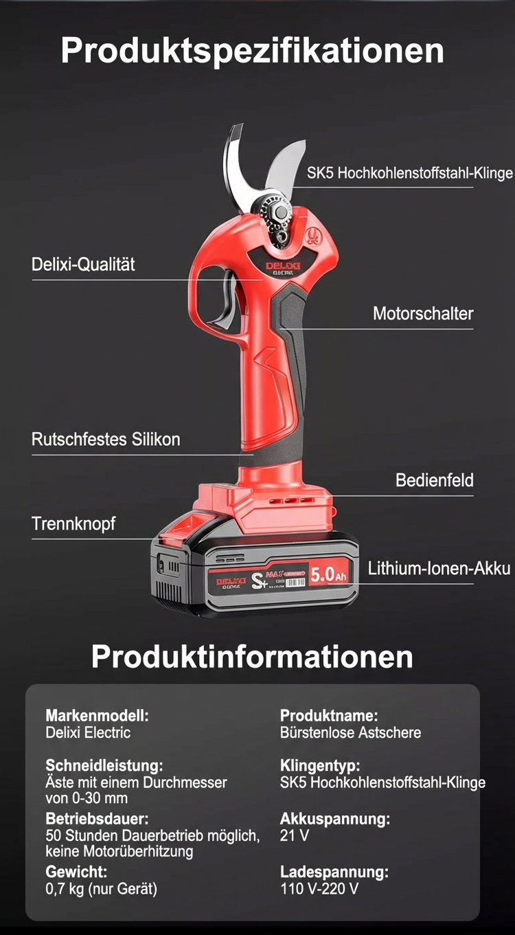 Münchner Profi-Akku-Schnittschere✨1880W Bürstenloser Motor✨Ergonomisch & stoßdämpfend für Senioren.