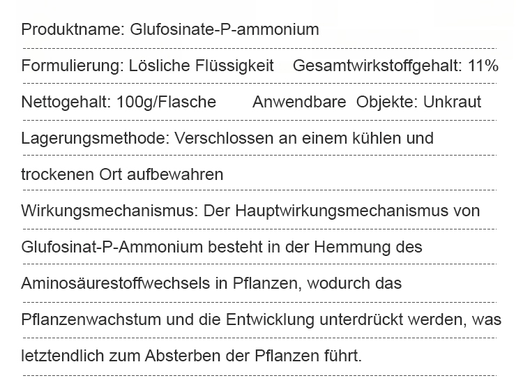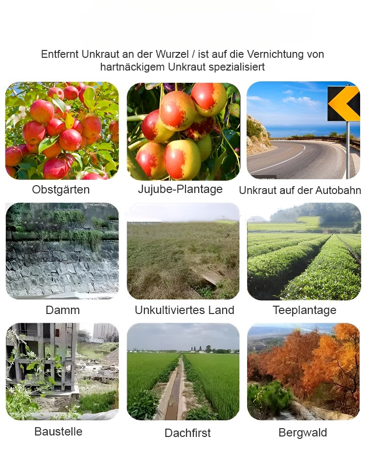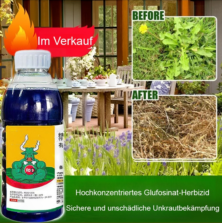 Gründliches Unkrautentfernen, schadet dem Boden nicht, eine Flasche reicht für 3-5 Morgen Land.